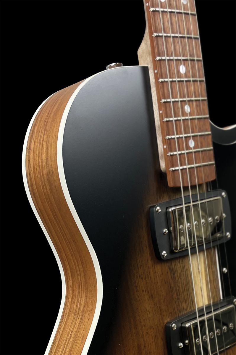 The SH90-VB is a single cutaway Semi-Hollow Electric Guitar with blackwood back, sides & top. Queensland Maple neck and Johnstone River Teak fingerboard with Pratley Tuners. Gotoh TOM Bridge and Stoptail, a Graphtech nut and a premium semi-gloss nitrocellulose lacquer finish. Top level joinery with all premium components makes this a pro level vintage styled Semi-Hollow electric.