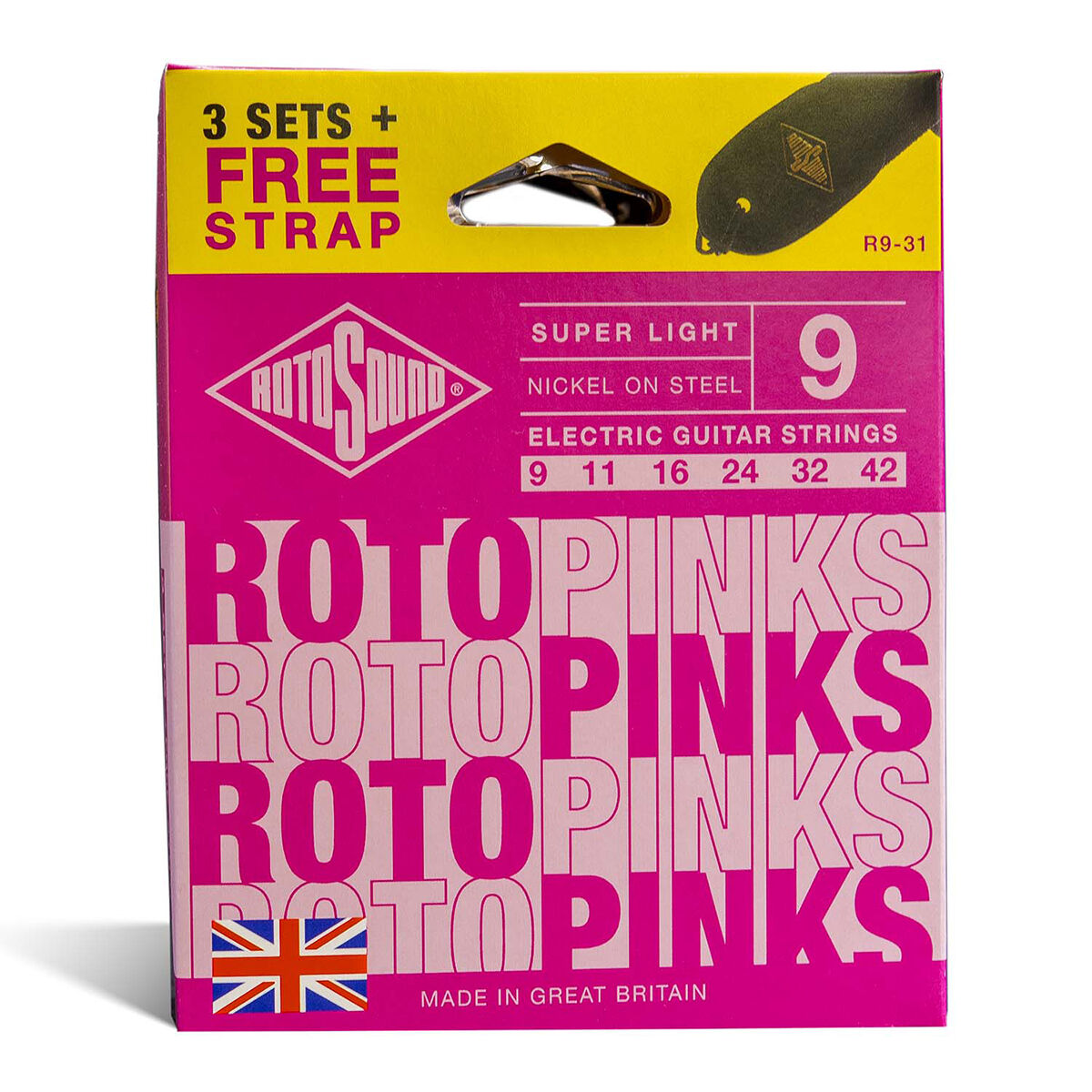 Rotosound Roto Pinks Electric Value 3-Pack String Set + Bonus Strap [R931]